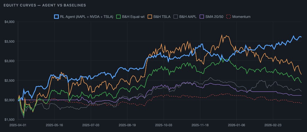 A research-grade reinforcement learning system that trains a PPO agent to trade a 7-asset portfolio across tech, finance, energy, and ETF markets, combining NLP-driven sentiment analysis with rigorous walk-forward validation, multi-seed testing, and ablation studies to ensure scientific robustness and generalizability.